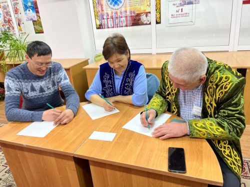 "Алғыс айту-адамгершіліктің белгісі" атты көрменің ерекшелігі қатысушылар скипермен өз алғыстарын жазып ұсынды және мерекелік рамкаға есткелікке фотаға түсті.